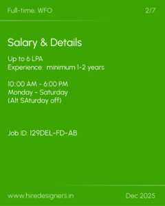 The role involves supporting the complete design process from concept creation to on site coordination, while maintaining quality and timely project delivery. The designer should collaborate closely with the senior team, vendors and artisans for smooth workflow.
