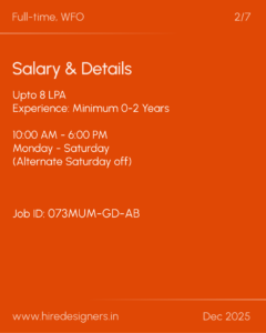 This position demands creative ownership and hands on execution, turning brand ideas into impactful visuals across campaigns, catalogues, and events.