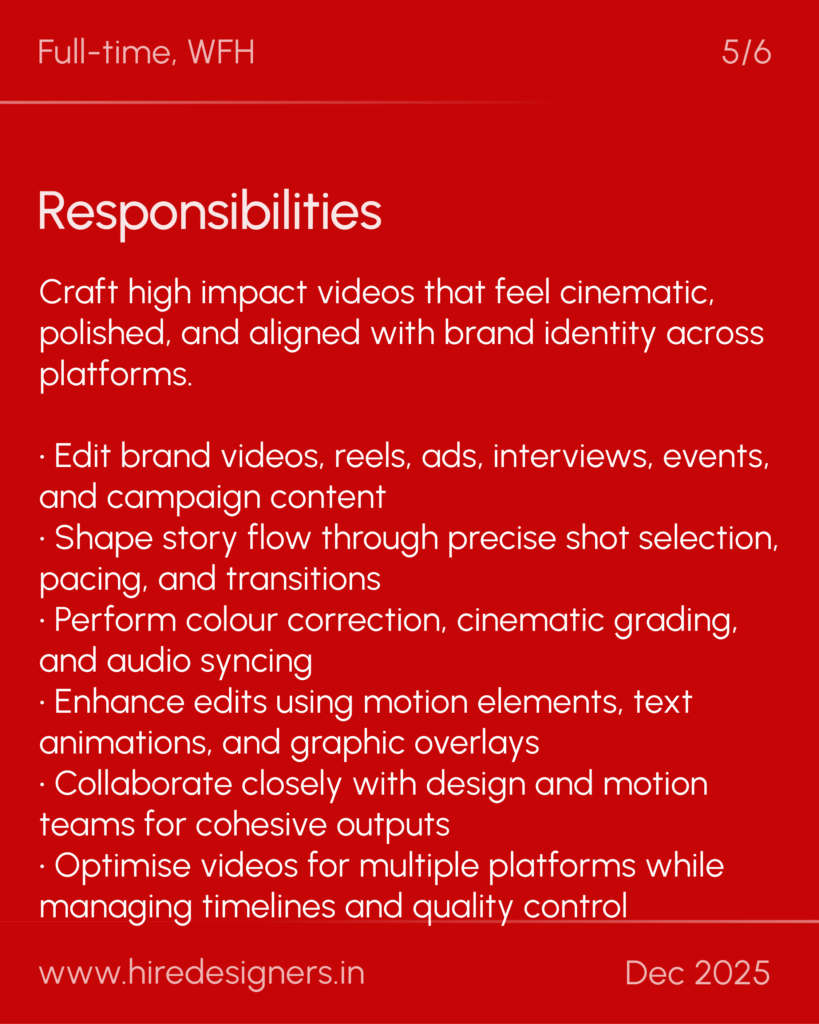 • Collaborate closely with design and motion teams for cohesive outputs