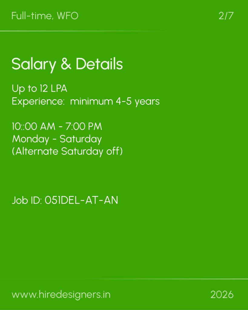 You will handle end-to-end design development, ensuring accuracy, creativity, and client satisfaction.