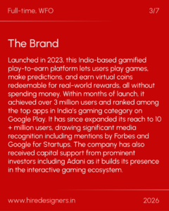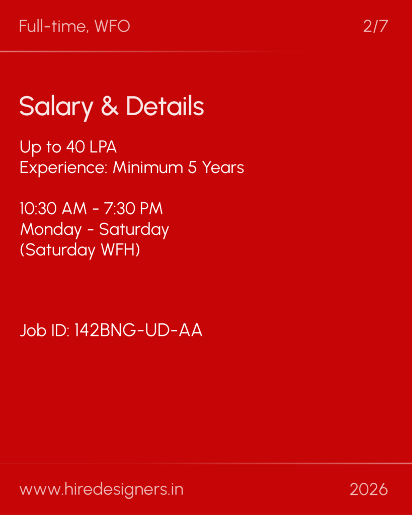 A strategic, detail oriented and innovation driven Senior Product Designer who can transform complex ideas into intuitive, engaging digital experiences. The role demands analytical thinking, visual finesse and strong product ownership.