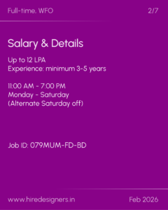 The role focuses on end to end product and furniture design, working closely with multiple teams to deliver practical and visually strong solutions. Attention to detail and coordination are key throughout the design process.