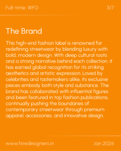 A proactive role that focuses on managing end-to-end sample development, timely sourcing of quality materials, and smooth coordination with vendors to ensure seamless production workflows and product excellence.
