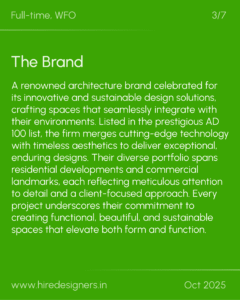 A renowned architecture brand celebrated for its innovative and sustainable design solutions, crafting spaces that seamlessly integrate with their environments. Listed in the prestigious AD 100 list, the firm merges cutting-edge technology with timeless aesthetics to deliver exceptional, enduring designs. Their diverse portfolio spans residential developments and commercial landmarks, each reflecting meticulous attention to detail and a client-focused approach. Every project underscores their commitment to creating functional, beautiful, and sustainable spaces that elevate both form and function.