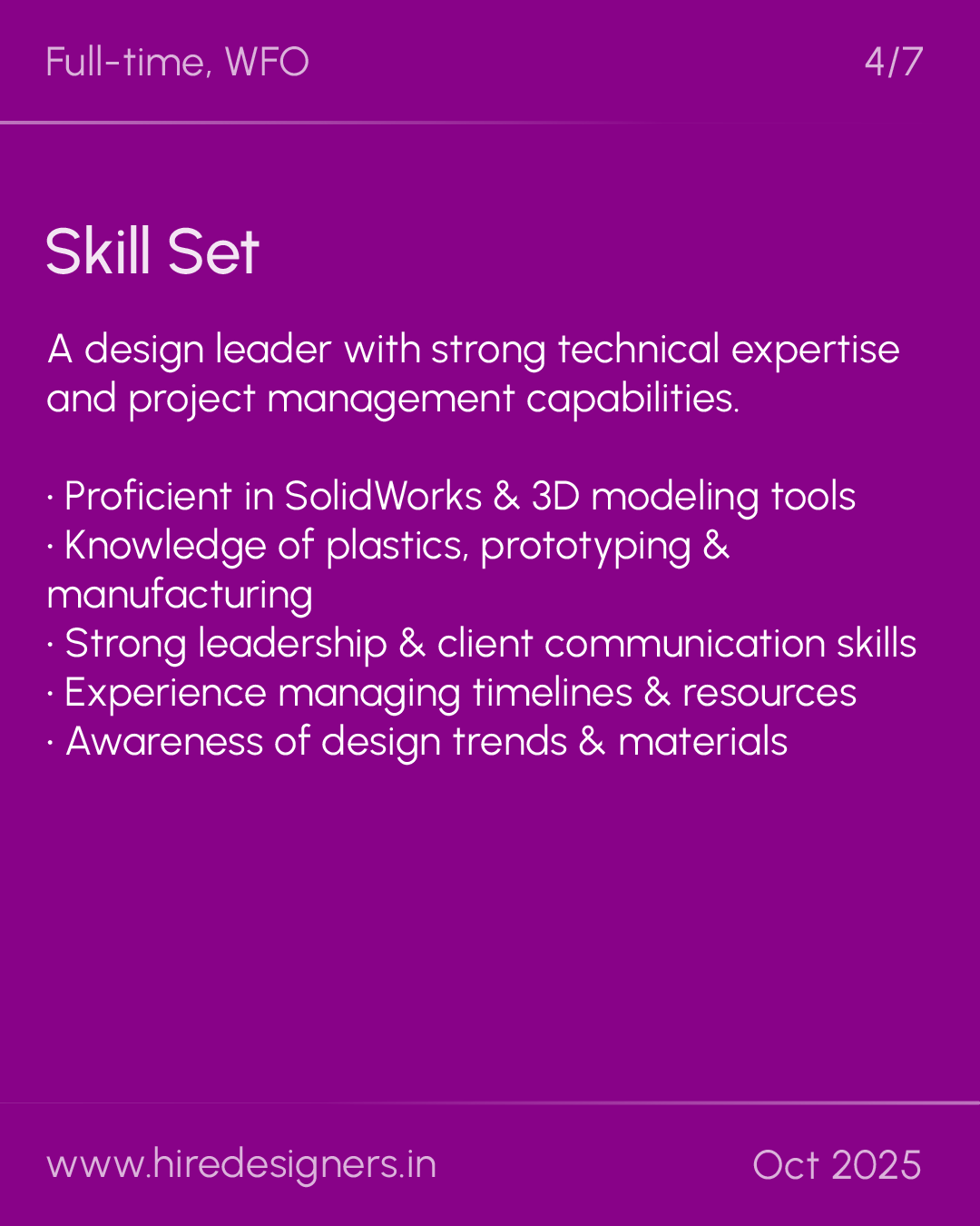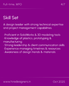 This award-winning design studio is known for its cutting-edge industrial design, blending innovation with functionality across sectors like consumer electronics, transportation, lifestyle, and appliances. With over two decades of design leadership, they have partnered with leading brands such as Godrej, Hero, Hindware and HCL to create products that are both future-ready and user-focused. Their work has been recognized with prestigious awards including the Red Dot and CII Design Excellence. Driven by curiosity and rooted in Indian design sensibilities, the studio continues to shape iconic products that stand at the intersection of form, function, and impact.