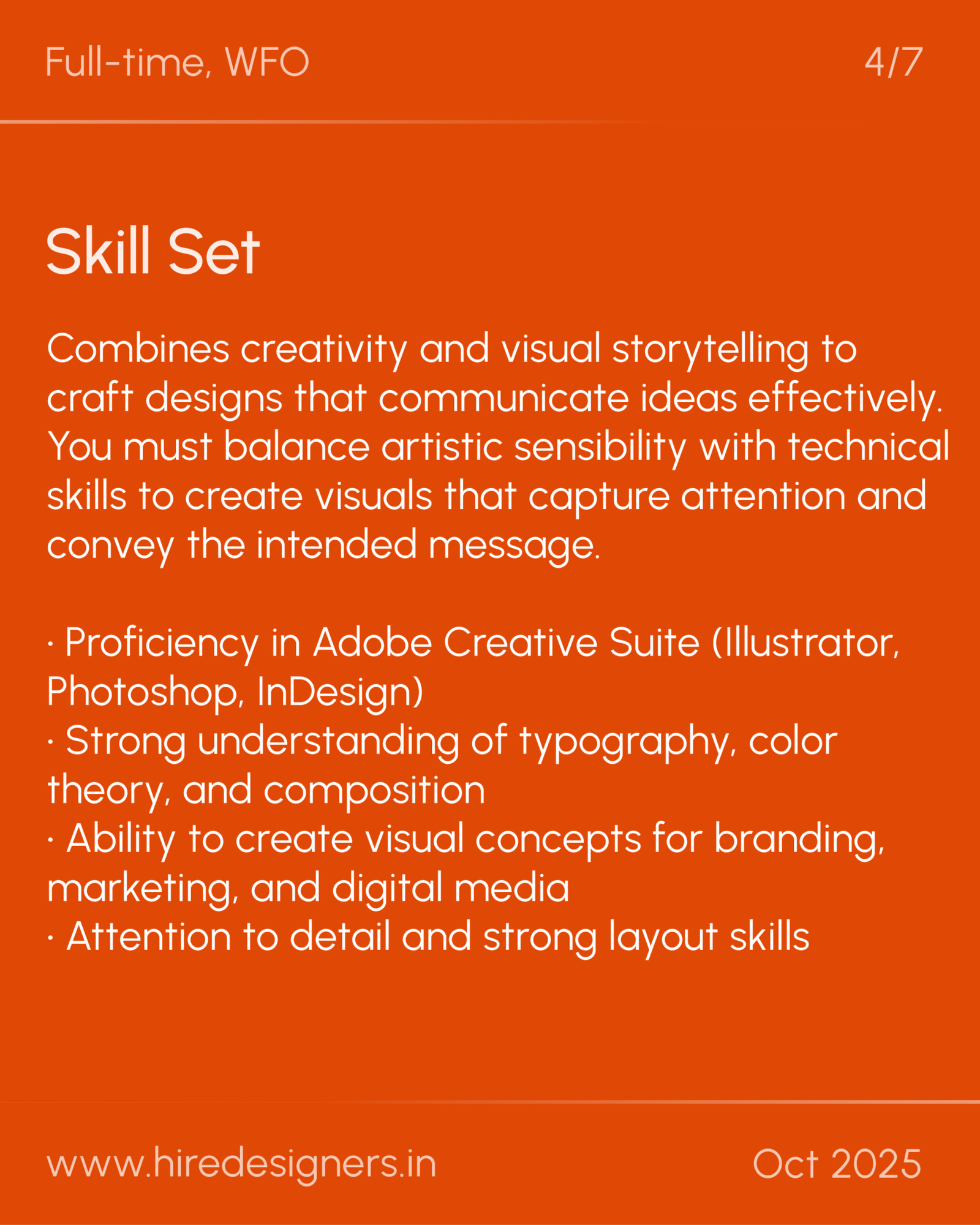 โข Strong understanding of typography, color theory, and composition