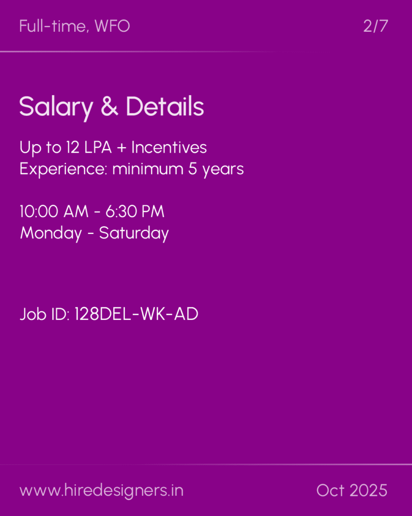 The role demands designing bespoke wardrobes, cabinets, and furniture aligned with the brand’s ethos while ensuring functionality, durability, and precision. Collaboration and innovation are key.