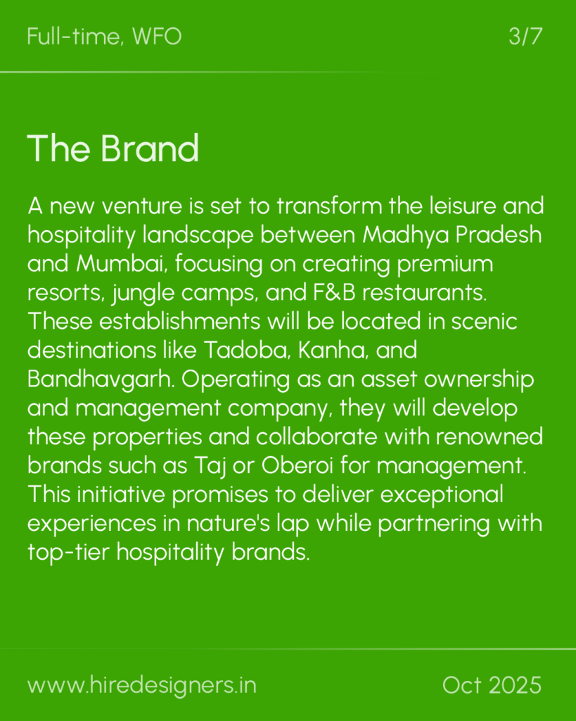 A new venture is set to transform the leisure and hospitality landscape between Madhya Pradesh and Mumbai, focusing on creating premium resorts, jungle camps, and F&B restaurants. These establishments will be located in scenic destinations like Tadoba, Kanha, and Bandhavgarh. Operating as an asset ownership and management company, they will develop these properties and collaborate with renowned brands such as Taj or Oberoi for management. This initiative promises to deliver exceptional experiences in nature’s lap while partnering with top-tier hospitality brands.
