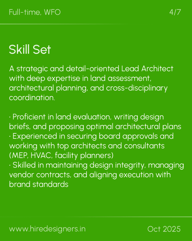 A strategic and detail-oriented Lead Architect with deep expertise in land assessment, architectural planning, and cross-disciplinary coordination.