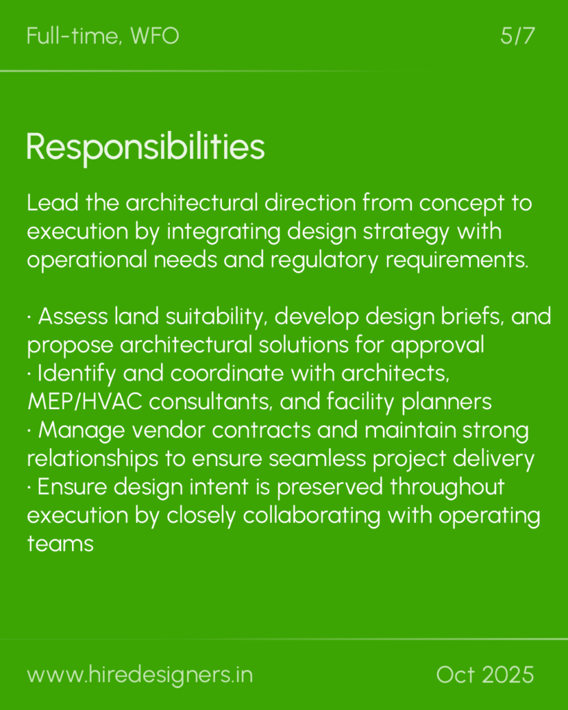 โข Experienced in securing board approvals and working with top architects and consultants (MEP, HVAC, facility planners)