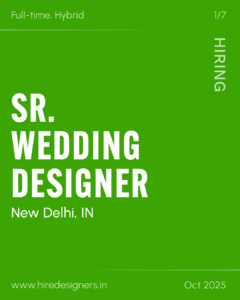The role involves transforming briefs into unique wedding designs, ensuring flawless execution. From mood boards to final coordination, the designer leads projects with precision.
