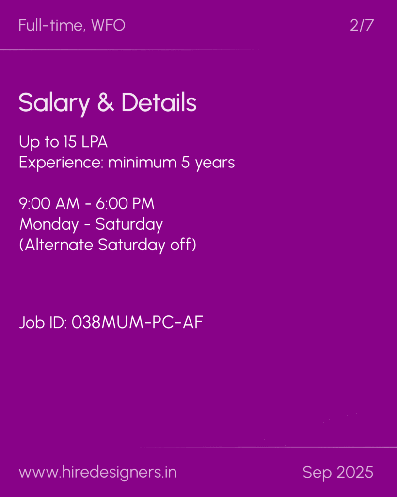 The ideal candidate should be highly creative with strong technical expertise in Procreate for jewelry design. A good understanding of high-end diamond jewelry for both domestic and international markets is essential..