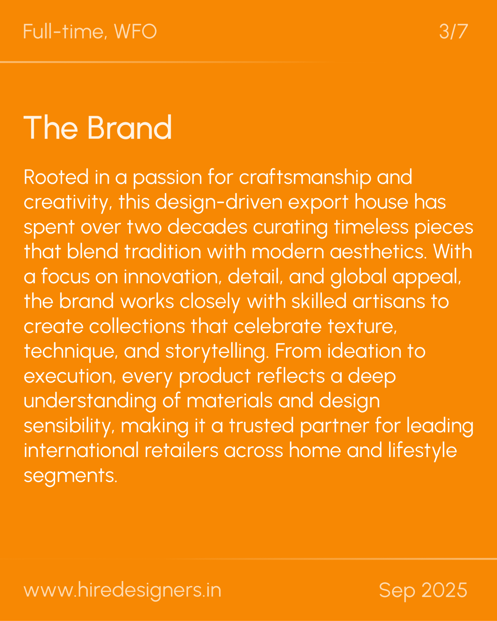 Rooted in a passion for craftsmanship and creativity, this design-driven export house has spent over two decades curating timeless pieces that blend tradition with modern aesthetics. With a focus on innovation, detail, and global appeal, the brand works closely with skilled artisans to create collections that celebrate texture, technique, and storytelling. From ideation to execution, every product reflects a deep understanding of materials and design sensibility, making it a trusted partner for leading international retailers across home and lifestyle segments.