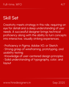 โข Proficiency in Figma, Adobe XD, or Sketch