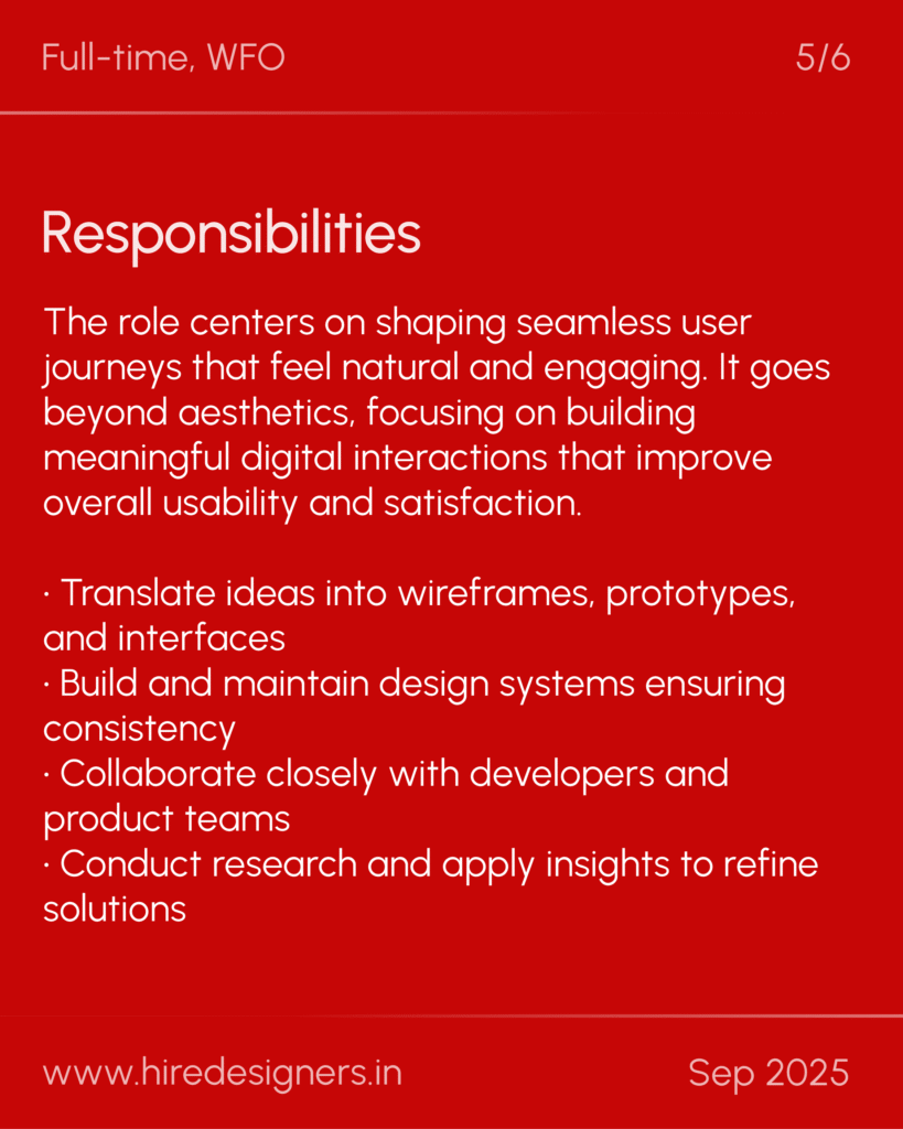 The role centers on shaping seamless user journeys that feel natural and engaging. It goes beyond aesthetics, focusing on building meaningful digital interactions that improve overall usability and satisfaction.