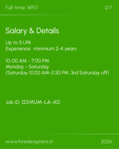 • Proficiency in AutoCAD, SketchUp, Photoshop, and MS Office (Lumion/Revit is a plus)