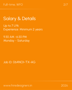A creatively driven Textile Designer with strong exposure to international markets, particularly the UK and Europe. The ideal candidate should combine technical knowledge of handloom and tufting with a refined aesthetic sensibility and trend awareness.