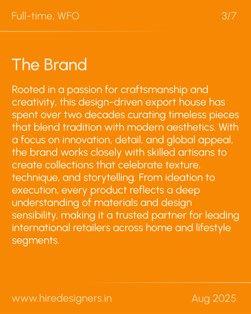 Rooted in a passion for craftsmanship and creativity, this design-driven export house has spent over two decades curating timeless pieces that blend tradition with modern aesthetics. With a focus on innovation, detail, and global appeal, the brand works closely with skilled artisans to create collections that celebrate texture, technique, and storytelling. From ideation to execution, every product reflects a deep understanding of materials and design sensibility, making it a trusted partner for leading international retailers across home and lifestyle segments.
